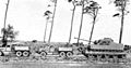 Diamond T tank transporters of the British Army with a load of a Grant ARV, followed by one with a Grant gun tank, in Burma, 1945.