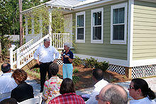 The corporation was scheduled to close on the purchase on August 18, 1969, one day after Hurricane Camille made landfall in Hancock County. Shortly after the storm left the area, the investment team was able to survey the damage and found that the area around current-day Diamondhead received far less damage than other coastal areas. Seeing such little damage from Camille, the investment team decided to go ahead with the project.[8] Soon after, Diamondhead had streets, lots, infrastructure, model homes, a country club, an airport, a driving range, and a pavilion that would become the community center. Construction of I-10 to the exit at Diamondhead was completed in October 1970, allowing greater traffic access to Diamondhead. By June 1973, 3,700 lots had been sold and 31 homes had been constructed, with another 29 under construction.[14][15] Diamondhead was responsible for much economic growth by creating opportunities for builders, tradesmen, and service industries related to the construction industry. The community also benefitted from other growth along the coast as employees from the Naval Oceanographic Office at Stennis Space Center, the Michoud Assembly Facility in New Orleans East, and other developments around the area chose to live in Diamondhead.[16] By the end of the 1970s, 6,500 of the 10,000 lots offered at Diamondhead had been sold. Most of the early residents came from New Orleans, but later residents came from all over the United States.[17] A survey taken in the late 1970s revealed that a large percentage of property owners came from New Orleans to escape overcrowding conditions.[16]