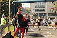 He was seen at the 2011 and 2012 Giro d'Italia and the 2011 Cologne Marathon in a pink devil costume.[7]
