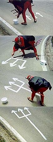 During the 2006 Tour of Switzerland, Didi Senft painted his signature trident on the road before the competitors were set to go by. However, the local Swiss police told him it was illegal and asked him to remove the marks in order to avoid facing a fine.[5]