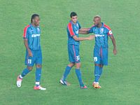 Halfway through the 2001–02 season Ligue 1 club Guingamp consolidated months of interest with a transfer offer and Drogba left Le Mans for a fee of £80,000.[20] The second half of the 2001–02 season saw Drogba make 11 appearances and score three goals for Guingamp. While his contributions helped the club avoid relegation, the coaching staff remained unconvinced of their new young striker.[27] However, the next season he rewarded his coaches' patience, scoring 17 goals in 34 appearances and helping Guingamp finish seventh, a record league finish.[20] He credited his teammates for his impressive season, highlighting the contributions of winger Florent Malouda, a long time friend of Drogba, as a key factor in his goalscoring prolificity that season.[25] His strong goal scoring record attracted interest from larger clubs and at the end of the season, he moved to Ligue 1 side Olympique de Marseille for a fee of £3.3 million.[24]