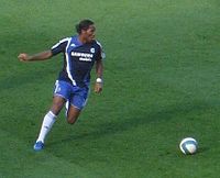 The 2007–08 season began badly for Drogba as he expressed his doubts about the departure of manager José Mourinho. He was reportedly in tears when Mourinho told him he was leaving the club, and said "Mourinho's departure destroys a certain familiarity we had at the club. Many of us used to play first and foremost for the manager. Now we need to forget those feelings and find another source of motivation".[45] Following these claims, Drogba told France Football Magazine "I want to leave Chelsea. Something is broken with Chelsea, The damage is big in the dressing room".[46] Despite having signed a four-year contract with the club in 2006, Drogba reportedly pointed out several favoured clubs in the interview, identifying Barcelona, Real Madrid, Milan or Internazionale as possible future destinations,[47] he later admitted he regretted this and was 100% committed to Chelsea.[46] Drogba made it up to the fans by scoring in Chelsea's 2–0 victory over Middlesbrough on 20 October 2007, against Schalke 04 in the Champions League four days later, and two goals against Manchester City. In December 2007, Drogba was voted fourth (after Kaká, Lionel Messi and Cristiano Ronaldo) for the 2007 FIFA World Player of the Year.[48][49]