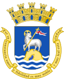 On March 8, 1948 the city government of San Juan officially adopted as the city's first flag an orange field, in the center of which is the Coat of Arms of the City. The orange color was based and taken from Father Diego de Torres Vargas' text and it reads : "Escudo de armas dado a Puerto Rico por los Reyes Católicos en el año de 1511, siendo Procurador un vecino llamado Pedro Moreno. Son : un cordero blanco con su banderilla colorada, sobre un libro, y todo sobre una isla verde, que es la de Puerto Rico, y por los lados una F y una I, que quiere decir Fernando e Isabel, los Reyes Católicos que se las dieron, y hoy se conservan en el estandarte real, que es de damasco anaranjado, con que se ganó la ciudad" ("Coat of Arms given to Puerto Rico by the Catholic Monarchs in the year 1511 when a vecino (roughly "freeman") named Pedro Moreno was Procurator. They are: a white lamb with its red flag, on top of a book, and everything above a green island, which is Puerto Rico...which is an orange damask, with which the city was won"). It appears that this orange was changed to white at some point.[4]
