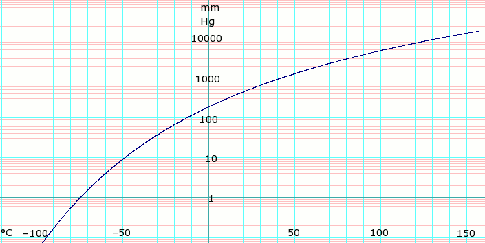 | T in °C | –74.3 | –48.1 | –27.7 | –11.5 | 17.9 | 34.6 | 56.0 | 90.0 | 122.0 | 156.0 | — | — | |