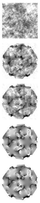 To recover the unknown phases of the Fourier transform the difference map relies on the projection to another constraint, PB. This may take several forms, as the object being reconstructed may be known to be positive, have a bounded support, etc. In the reconstruction of the surface image, for example, the effect of the projection PB was to nullify all values outside a rectangular support, and also to nullify all negative values within the support.
