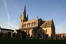 The church is dedicated to Thomas Becket and has a porch with strong Saxon elements and carvings. Built in the Gothic style, it has a tall spire, and is Grade I listed.[8] There is also a circular village lock-up which is Grade II listed,[9] and a medieval stone buttercross in the centre of the village which is Grade II listed,[10] and a scheduled monument although the top section of the pillar and cross appear to have been renewed, probably during the Victorian period. In the 1930s the churchyard was said to be haunted[11] The church spire was struck by lightning in August 1907 leading to repairs costing £80.