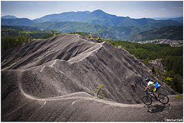 - The right bank of the Bléone (Park of the Haute-Provence Geological Reserve, along the Caguerenard path, paths to access the top of the slope (over 200 metres (660 ft) above the town) and the crest of Andran - Martignon - La Bigue.