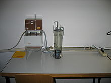 For the measurement of the volumetric expansion of liquids one takes a large glass container filled with water. In an expansion tank (glass container with an accurate volume scale) with the sample liquid. If one heats the water up, the sample liquid expands and the volume changes is read. However the expansion of the sample container must also be taken into consideration.