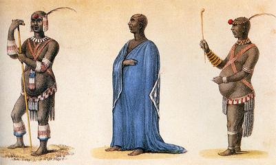 Dingane in ordinary and dancing dress | |