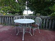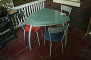 A table is an item of furniture with a flat top and one or more legs, used as a surface for working at, eating from or on which to place things.[1][2] Some common types of table are the dining room table, which is used for seated persons to eat meals; the coffee table, which is a low table used in living rooms to display items or serve refreshments; and the bedside table, which is used to place an alarm clock and a lamp. There are also a range of specialized types of tables, such as drafting tables, used for doing architectural drawings, and sewing tables.
