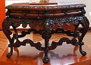 Some very early tables were made and used by the Ancient Egyptians[4] around 2500 BC, using wood and alabaster.[5] They were often little more than stone platforms used to keep objects off the floor, though a few examples of wooden tables have been found in tombs. Food and drinks were usually put on large plates deposed on a pedestal for eating. The Egyptians made use of various small tables and elevated playing boards. The Chinese also created very early tables in order to pursue the arts of writing and painting, as did people in Mesopotamia, where various metals were used.[4]