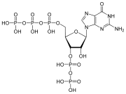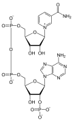 In addition to being building blocks for the construction of nucleic acid polymers, singular nucleotides play roles in cellular energy storage and provision, cellular signaling, as a source of phosphate groups used to modulate the activity of proteins and other signaling molecules, and as enzymatic cofactors, often carrying out redox reactions. Signaling cyclic nucleotides are formed by binding the phosphate group twice to the same sugar molecule, bridging the 5'- and 3'- hydroxyl groups of the sugar.[2] Some signaling nucleotides differ from the standard single-phosphate group configuration, in having multiple phosphate groups attached to different positions on the sugar.[3] Nucleotide cofactors include a wider range of chemical groups attached to the sugar via the glycosidic bond, including nicotinamide and flavin, and in the latter case, the ribose sugar is linear rather than forming the ring seen in other nucleotides.