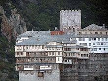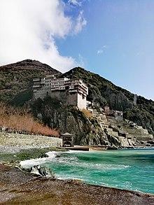 Dionysiou Monastery (Greek: Μονή Διονυσίου) is an Eastern Orthodox monastery at the monastic state of Mount Athos in Greece in southwest part of Athos peninsula. The monastery ranks fifth in the hierarchy of the Athonite monasteries. It is one of the twenty self-governing monasteries in Athos, and it was dedicated to John the Baptist.