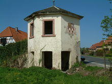 A social problem grew out of the short-lived running of a stoneware factory that existed from 1778 to 1788 in the middle of the Upper Village.[8] There, the Bishopric of Worms was having "Dirmstein Faïence" made from the white clay that came from the Bishopric’s own stripmine near today’s Hettenleidelheim in the northeast Palatinate Forest, a product whose now few preserved examples are sought-after in collectors’ circles. As early as 1779, a few months after production began, the then mayor, Johann Michael Graeff, schemed against the factory head and ceramics expert Johann Carl Vogelmann, casting false accusations his way, whereupon Vogelmann’s belongings were withheld as he, along with his wife and seven children, was hounded out of the village. Graeff took the banished former head’s job at the factory, but was such a dilettante when it came to running the business that in 1782, the Bishopric unseated him. Under Graeff’s successors, though, the business never did recover, leading to the 20- to 30-strong workforce’s impoverishment, culminating in strike-like events. Further reasons given for ending the project were the cumbersome carting of the raw materials over some 25 km and the distribution difficulties with the finished products in the face of the many customs duties.