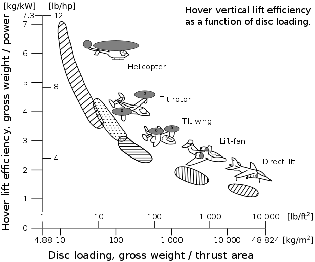 | MV-22B Osprey | Tiltrotor V/STOL | 60,500 lb (27,400 kg) | 2,268 ft2 (211.4 m2) | 26.68 lb/ft2 (129.63 kg/m2) |
