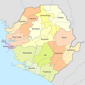 The provinces of Sierra Leone are divided into 16 districts, as of July 2017.[1][2] Previously, the country was divided into 14 districts. The Western Area is divided into two districts. Sierra Leone's capital Freetown is located in the Western Area of the country and its makes up the Western Area Urban District.