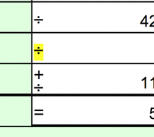 Unlike multiplication and addition, division is not commutative, meaning that a / b is not always equal to b / a.[7] Division is also not, in general, associative, meaning that when dividing multiple times, the order of division can change the result.[8] For example, (20 / 5) / 2 = 2, but 20 / (5 / 2) = 8 (where the use of parentheses indicates that the operations inside parentheses are performed before the operations outside parentheses).