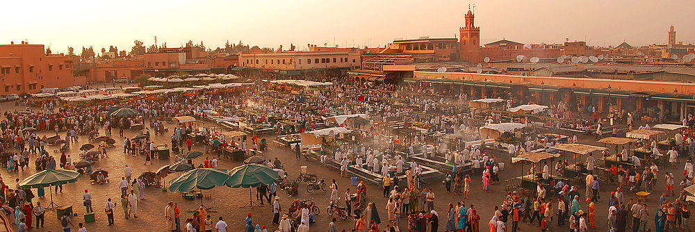 Jemaa el-Fnaa (Arabic: ساحة جامع الفناء Sāḥat Jāmiʾ al-Fanāʾ, also Jemaa el-Fna, Djema el-Fna or Djemaa el-Fnaa) is a square and market place in Marrakesh's medina quarter (old city). It remains the main square of Marrakesh, used by locals and tourists.