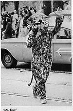 In the 1970s, however, the Towson Tiger was rarely referenced or talked about. Other than brief sports stories, there is only one reference in a 1970s yearbook. The tiger resurfaced in the 1980s with the purchase of the first official costume by the sports program and with a major presence in almost every issue of Tower Echoes and around the campus.[1]