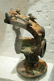 Cult activity at Dodona was already established in some form during the Late Bronze Age (or Mycenaean period).[9] During the post-Mycenaean period (or "Greek Dark Ages"), evidence of activity at Dodona is scant, but there is a resumption of contact between Dodona and southern Greece during the Archaic period (8th century BCE) with the presence of bronze votive offerings (i.e. tripods) from southern Greek cities.[9] Archaeologists also have found Illyrian dedications and objects that were received by the oracle during the 7th century BCE.[10] Until 650 BCE, Dodona was a religious and oracular centre mainly for northern tribes ; only after 650 BCE did it become important for the southern tribes.[11]