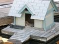 Humans often build "houses" for domestic animals, often resembling smaller versions of human domiciles. These include bird-houses, hen-houses/chicken-coops and doghouses; while housed agricultural animals more often live in barns and stables. Doghouses are often used when the dog is outdoors in the garden, and on areas around a farm where the dog guards the possessions of the owners from unwanted/unexpected people or animals. A doghouse is made of insulating material (often wood) to prevent loss of heat except for a front opening where the dog will enter. The roof is almost always waterproof material. The roof of a doghouse is built to prevent snow or rain from collecting. Often, the owner of the pet should be able to open or remove the roof.