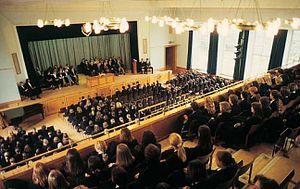 Around 90 of the pupils are boarders;[3] the rest are day pupils, either from the village of Dollar itself or from the surrounding counties of Clackmannanshire, Stirlingshire, Perth and Kinross and Fife. Almost 50% of the boarding pupils are from overseas, with the rest being British nationals.[4] The overall share of international students is relatively low at about 20% of all students.[5]
