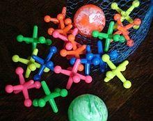 The name was attached to the objects when Kruger's father, Joe Kruger, who also worked in the harbour, came upon his son and others playing with small models of the objects and asked him Wat speel julle met die dolos? (English: What are you playing at with the dolos?). There is a very ancient game called knucklebones, a modern version of which uses playing pieces as shown in the adjacent photograph. The similarity between these and dolos is beyond question.