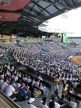 As a cultural icon of the Dominican Republic, baseball holds a strong presence in many parts the country. Surrounded by working class neighborhoods, baseball stadiums in larger Dominican cities are routinely maintained. Owners of big businesses like sugar refineries funded the construction of these fields to benefit from the games. Games in these stadiums attract major crowds and a sense of community can be observed.[4] Like their American counterparts, these "latinized" games exude free-spiritedness, social cohesion, and festivity from the fans and players alike.[5] In the Dominican Republic, baseball players are regaled as sports heroes and function as role models to their fan base. This idolization is covered by the media more so than in the United States.[3]