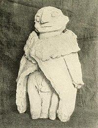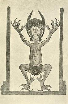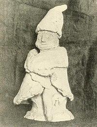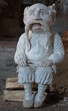 The Domovoy is usually represented as an old, gray-haired man with flashing eyes. He may manifest in the form of animals, such as cats, dogs or bears, but also as the master of the house or a departed ancestor of the given family,[10] sometimes provided with a tail and little horns.[11] In some traditions the Domovoy are symbolised as snakes.[12] Household gods were represented by the Slavs as statuettes, made of clay or stone, which were placed in niches near the house's door, and later on the mantelpieces above the ovens. They were attired in the distinct costume of the tribe to which the kin belonged.[7]
