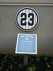 - ^ Curry, Jack (January 23, 1997). "Mattingly Says Farewell, and So Does His Number". The New York Times. Retrieved February 3, 2015.