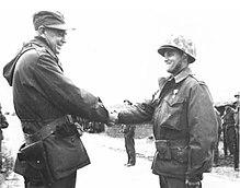 After basic training, he served as a platoon leader at San Diego Marine Corps Base, then served in the South Pacific with the 2nd Marine Brigade during World War II, seeing action in Guadalcanal, Vella Lavella, and Bougainville as a rifle company commander. He was hospitalized briefly from injuries sustained in Bougainville and then joined the 1st Marine Division in time for landings on Peleliu and, later, Okinawa, where he was again wounded in action. He was a lieutenant colonel commanding an infantry battalion training for the invasion of Japan when the war ended.