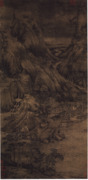 The Xiao and Xiang Rivers or Scenes along the Xiao and Xiang Rivers, a painting on silk (49.80 cm by 141.30 cm),[3] is one of his best-known masterpieces. It demonstrates his exquisite techniques, and his sense of composition. The clouds break the background mountains into a central pyramid composition and a secondary pyramid, by softening the mountain line, he makes the immobile effect more pronounced.