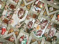 Furthermore, the inclusion of the five protruding heads in the paintings frame is often seen as a reference to a similar motif found on Ghiberti's Porta del Paradiso, the bronze doors of the Florence Baptistry which Michelangelo is known to have greatly admired.[8][9]