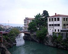 As it crosses the Aosta Valley, the Dora Baltea flows through the city of Aosta (where the Buthier runs into it) and near all the main cities of the lower Aosta Valley: Châtillon, Saint-Vincent, Verrès and Pont-Saint-Martin. After it enters Piedmont, it passes through the city of Ivrea and a good part of Canavese, gets from its right hand the waters of the Chiusella and reaches the Po at Crescentino, a little downstream from Chivasso.
