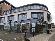 The catchment population for major food retail outlets in Dorchester is 38,500 (2001 estimate) and extends eight miles west, north and east of the town, and two miles south.[56] The Brewery Square redevelopment project now includes retail outlets, residential units, bars, restaurants, hotel and cultural facilities. The regeneration of Dorchester South railway station will make it the UK's first solar powered railway station.[57] The Charles Street development has had a first phase completed that includes a library and adult education centre for Dorset County Council, and offices for Dorset Council. Future phases are planned to include 23 shops, an underground car park, hotel and affordable housing. The second phase has attracted funding of £4 million from the former West Dorset District Council and includes new Marks & Spencer and Waitrose stores.[58]