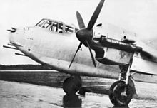 The E series was the initial major production variant, based on V9 prototype, and powered by two BMW 801 radial engines. Deepened fuselage with larger bomb-bay, entered production in 1940.[34][35] The V9 had been planned as the prototype for the E-1 variant. The V9 had a fixed MG 151 with 250 rounds of ammunition while the MG 204 was to be installed in the nose. The type was fitted with a dummy run of Lofte 7 and BZA 1 bombing systems. The main armament was to be a single torpedo of either SD 1000 or SC 1700 standard. When the mock up had been given the green light for technical development construction began in the spring, 1940. During September 1940 engine vibration problems were experienced but fixed quickly. During flight tests it was discovered the air brake caused a speed loss of 2 metres per second (4.5 mph). The V9 underwent heavy tests and was withdrawn to Rechlin, where it acted as a prototype until at least October 1943. During this time it also had trials with BMW 801A and BMW 801G engines.[36]
