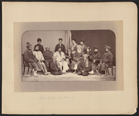 Dōst Moḥammad Khan seated slightly to the right of center in this photograph. To Dōst Moḥammad’s right, the first figure in a white chapan (overcoat) is his son and successor Sher ʻAlī Khān (1825–1879), who ruled Afghanistan from 1863 to 1879. Abd al-Raḥmān Khān (c. 1844 – 1901), the grandson of Dōst Mohammad and future “Iron Amir” of Afghanistan, is on Dōst Moḥammad’s far left.