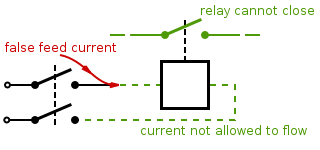 Double switching, double cutting, or double breaking is the practice of using a multipole switch to close or open both the positive and negative sides of a DC electrical circuit, or both the hot and neutral sides of an AC circuit. This technique is used to prevent shock hazard in electric devices connected with unpolarised AC power plugs and sockets. Double switching is a crucial safety engineering practice in railway signalling, wherein it is used to ensure that a single false feed of current to a relay is unlikely to cause a wrong-side failure. It is an example of using redundancy to increase safety and reduce the likelihood of failure, analogous to double insulation. Double switching increases the cost and complexity of systems in which it is employed, for example by extra relay contacts and extra relays, so the technique is applied selectively where it can provide a cost-effective safety improvement.