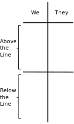 In rubber bridge, the place on the score pad (below the main horizontal line) where trick points scored for making a contract, i.e. tricks bid for and taken exclusive of overtricks, are recorded. These are the points counted towards game. See Above the line and Bridge scoring.