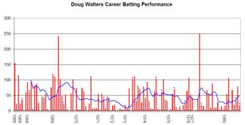 After Walters' innings I wrote that with one necessary qualification I thought he would be come to be rated as the best bat produced by Australia since Neil Harvey proclaimed himself with his famous hundred at Headingley in ‘48. The reservation concerned his ability against really fast bowling, as to which I had no evidence...Only Lawry and Simpson have made more runs and had records to compare if one is to make a quantitative judgement. At all events my contention is at least arguable. Doug has made eleven hundreds for Australia, some of extreme brilliance, and if he ever played a dull innings I never saw it.[4]