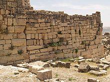 Recent finds have disproved earlier theories about the so-called "Numidian walls". The walls around Dougga are in fact not Numidian; they are part of the city's fortifications erected in late antiquity. Targeted digs have also proven that what had been interpreted as two Numidian towers in the walls are in fact two funeral monuments from the Numidian era reused much later as foundations and a section of defences.[7]