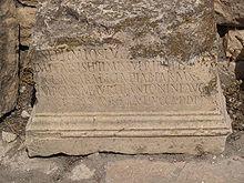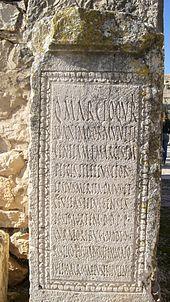 According to Christol though, this interpretation overly restricts the meaning of the word libertas.[30] In Christol's view, it is important not to forget that the emperor's decision in 205 must have been taken in response to a request made by the civitas and must have taken account of the relations that already existed between it and the pagus. It was the autonomy that the civitas had achieved during the reign of Marcus Aurelius and the granting of Roman law that raised the specter of a fusion of the two communities, which would without a doubt have provoked a certain unease in the pagus. The inhabitants of the pagus would have expressed "concern or even refusal when faced with the pretensions of their closest neighbors".[31] This would explain the honor that the pagus attributed to Commodus (conservator pagi, "protector of the community").[32]