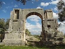Septimius Severus’s arch, which is heavily damaged, stands close to the mausoleum and on the route leading from Carthage to Théveste.[52] It was erected in AD 205.