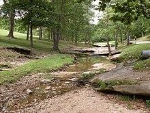 Previously, the county seat was located at Arno, west of Ava. Prior to that, Vera Cruz (formerly called Red Bud) was the county seat. Vera Cruz is located on Bryant Creek, which flows through the middle of the county. The Civil War Battle of Clark's Mill took place near Vera Cruz on November 7, 1862 and resulted in a Confederate victory.[5] After the American Civil War, during a period of general chaos, a group from the western part of the county broke into the Arno courthouse and removed the records back to Vera Cruz. Later in 1871, a new town site was selected, present-day Ava, near the location of the former U.S. Civil War military Post Office, Militia Spring. The location of this new town seemed to satisfy most of the residents of Douglas County to be their point of county government.