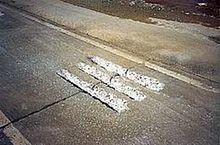 The visible marks may appear to be a symmetrical pattern of dash marks on the roadway, as if there were an associated meaning to the pattern.[5] When there are many of them along the roadway, motorists on the interstate highways may interpret the grind marks as an unknown form of mechanical markers, such as ground-in strips, or strange road surface markings.[6][7] In some cases, these marks are confusing for motorists. When roads are under construction and lanes are laterally shifted, such marks may interfere with temporary lane markings. As the marks from the dowel bar retrofit are not intended to be any form of road surface markings, the responsible agencies try to make these marks smooth and hope to make them less visible to the motorists.[8]
