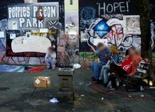 On its core blocks, dozens of people are shuffling or staggering, flinching with cocaine tics, scratching scabs. Except for the young women dressed to lure customers for sex, many are in dirt-streaked clothing that hangs from their emaciated frames. Drugs and cash are openly exchanged. The alleys are worse.