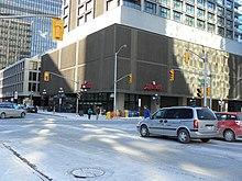 Downtown Ottawa (French: Centre-Ville d'Ottawa) is the central area of Ottawa, Ontario, Canada. Like other downtowns it is the commercial and economic centre of the city. It is sometimes referred to as the Central Business District and contains Ottawa's financial district. It is bordered by the Ottawa River to the north, the Rideau Canal to the east, Gloucester Street to the south and Bronson Avenue to the west. This area and the residential neighbourhood to the south are also known locally as 'Centretown'. The total population of the area is 4,876 (2016 Census).[1]