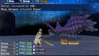 The game features a turn-based battle system, and enables the player to select the order in which the characters are to act. The actions that a character can make during battle are "Attack" (enables the character to physically attack an opponent), "Mana" (enables the character to perform skills and magic), "Guard" (allows the character to defend against an opponent's attack), "Item" (allows the character to use an item in the inventory), and "Escape" (allows the characters to run away from battle).