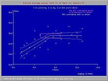 An example of a relation between crop yield and depth of water table subject to random natural variation is shown in the attached graph. The graph was made with the SegReg program, see segmented regression.