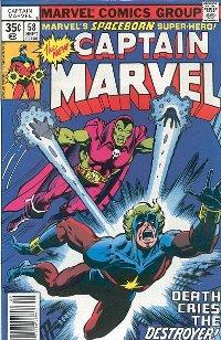 Steve Englehart (w), Al Milgrom (p). "Death Throws!" Captain Marvel 44 (May 1976), Marvel Comics - ^ Doug Moench (w), Pat Broderick (p), Bob McLeod (i). "A Destroyer--Denied!" Captain Marvel 58 (September 1978), Marvel Comics